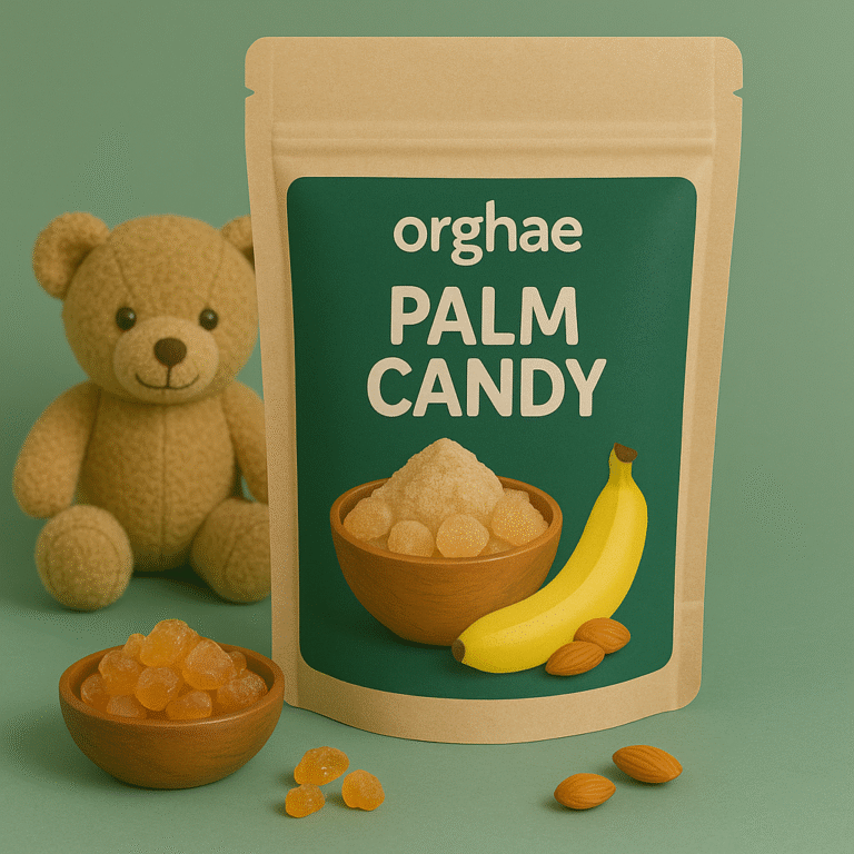 Orghae Palm Candy is a pure, traditional sweetener made from the sap of palm trees—sun-dried and unrefined, preserving all its natural minerals and health benefits. Unlike processed sugar, palm candy is gentle on your baby’s body and packed with essential nutrients.Helps build strong bones and improves hemoglobin.Natural remedy for sore throats and respiratory issues. and 100% natural, unrefined.